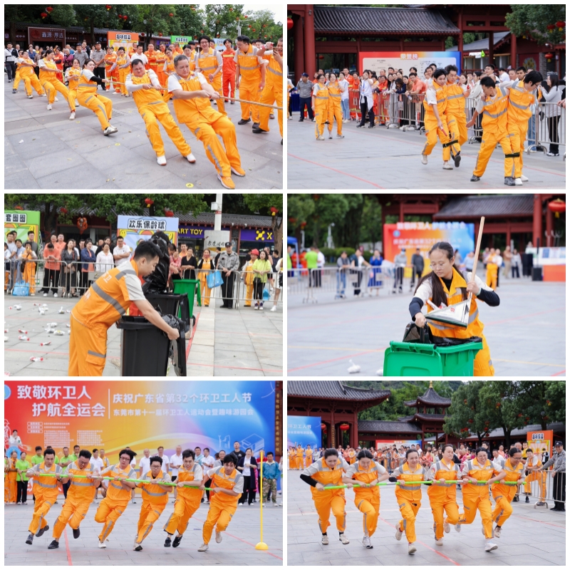 秋高氣爽,陽光和煦。10月21日上午,由東莞市城市管理和綜合執(zhí)法局指導(dǎo),東莞市環(huán)境清潔行業(yè)協(xié)會主辦的“致敬環(huán)衛(wèi)人,護航全運會”——慶祝廣東省第32個環(huán)衛(wèi)工人節(jié)東莞市第十一屆環(huán)衛(wèi)工人運動會暨趣味游園會在旗峰公園西門廣場隆重舉行。來自全市15支環(huán)衛(wèi)代表隊近400人齊聚一堂,在賽場上揮灑汗水,展現(xiàn)風(fēng)采。